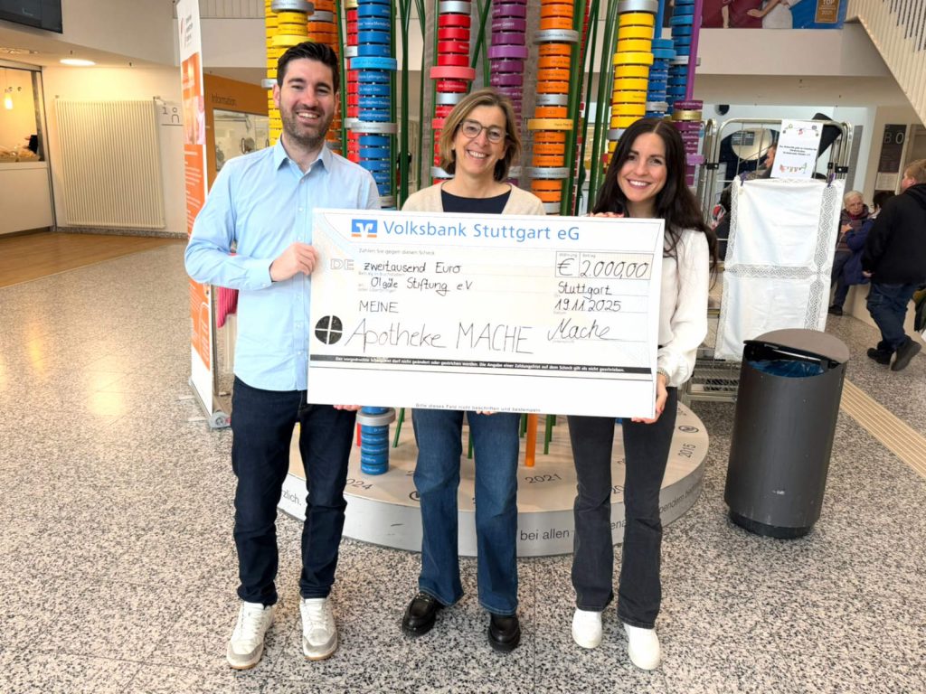 25. Februar 2026Die Apotheke Mache hat mit 2.500 Euro die Olgäle-Stiftung und damit kranke Kinder im Olgahospital unterstützt.