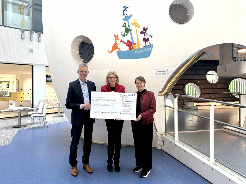 Dr. Stefanie Schuster, Präsidentin der Olgäle-Stiftung, freute sich über die persönliche symbolische Scheckübergabe durch Jutta Michel, Geschäftsleiterin und Jürgen Walter, Leitung Globale Qualitätssicherung und Werksqualität Division Automotive der Hoerbiger SynchronTechnik GmbH.