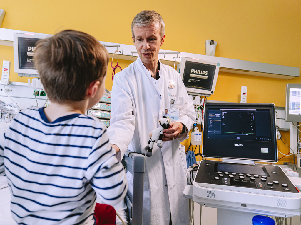 Einer der ersten Patienten, der von dem neuen Gerät profitieren konnte, war der fünfjährige Henry, der seit seiner Geburt an Herzrasen litt. Für den kleinen Jungen und seine Familie war dies eine große Belastung und schränkte den Alltag extrem ein. Zudem mussten Tag und Nacht Medikamente gegeben werden, die teils sehr unangenehme Nebenwirkungen mit sich brachten. Nach Stationen in anderen Kliniken konnte der kleine Henry am Stuttgarter Olgahospital von Prof. Dr. Gunter Kerst bei einer Katheterablation erfolgreich behandelt werden. Dabei waren das neue Ultraschallgerät, das den Eingriff besonders sicher und leistenschonend machte, sowie die vor drei Jahren ebenfalls von der Olgäle-Stiftung finanzierte Elektrophysiologieanlage im Wert von 250.000 Euro, welche die Behandlung überhaupt erst möglich machte, von zentraler Bedeutung. Henrys Mama ist unendlich dankbar, dass der Eingriff nun in Stuttgart möglich war. Es war für sie ein Albtraum, ihren Sohn Nacht für Nacht für die Medikamentengabe zu wecken – der Gedanke dies für weitere Jahre tun zu müssen war unerträglich! Nun wurde Henry als geheilt entlassen und die Mama hat auch mehr Zeit, sich um das wenige Monate alte Geschwisterchen zu kümmern. Für die junge Familie ein „kleines Wunder“.