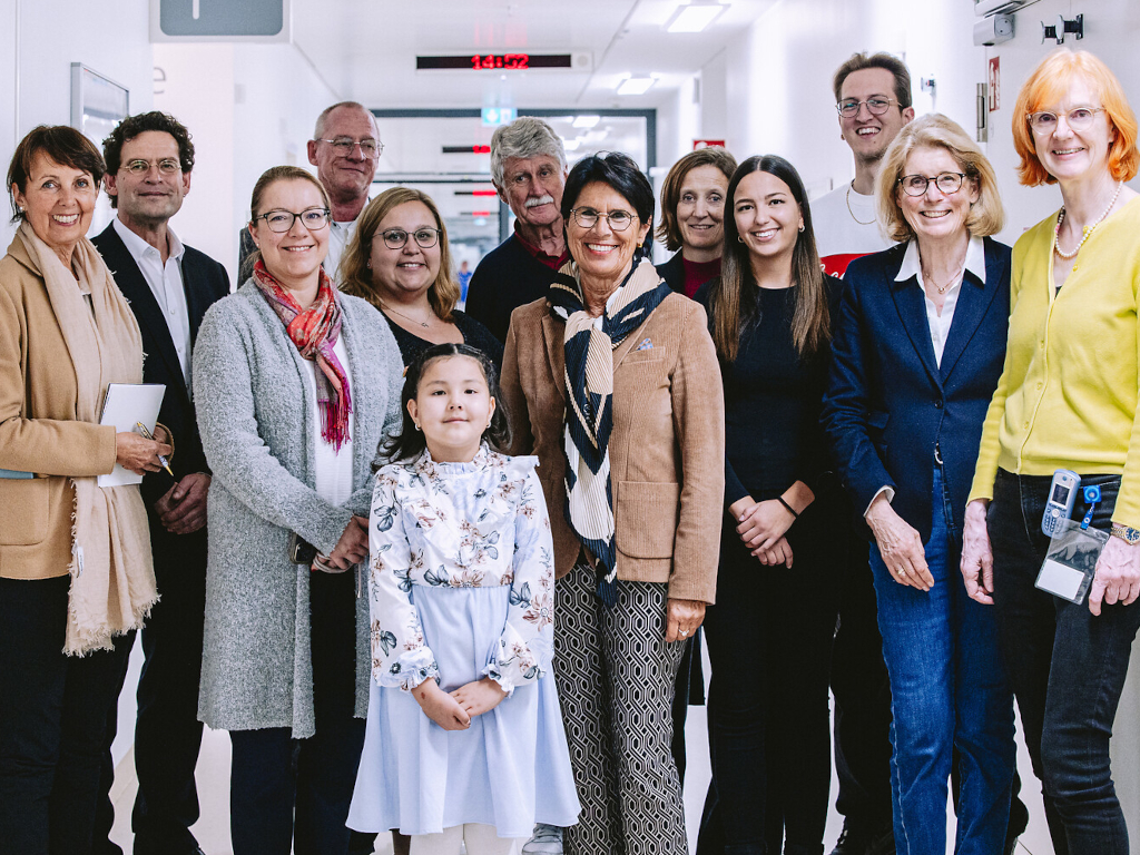 Foto: PD Dr. Thekla von Kalle (links), Ärztliche Direktorin der Kinderradiologie und Dr. Stefanie Schuster, Präsidentin der Olgäle-Stiftung mit einer kleinen Patientin
